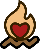 A flaming heart atop a brown linter-style squiggly line A flaming heart atop a brown linter-style squiggly line